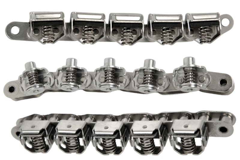 Our Gripper Chains are specially designed to convey plastic film in form, fill, and seal packaging machines, optimizing your production process with secure and controlled movement.