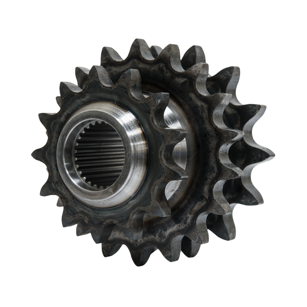 The 87664056 triple rotor drive sprocket is engineered for multi-chain rotor systems in Case IH and New Holland balers. Featuring a 13/18/14 tooth configuration, it supports synchronized chain engagement across triple drive assemblies.